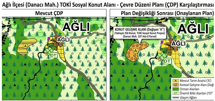 Kastamonu Ağlı ilçesi Danacı Mahallesi'nde inşa edilecek 250 konutluk TOKİ Sosyal Konut projesinin imar planları onaylandı. Projenin konumu ve tüm detayları haberimizde.