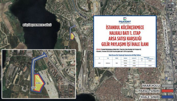 Emlak Konut, Küçükçekmece Halkalı Batı 1. Etap’ta arsa satışı karşılığı gelir paylaşımı modeliyle yeni projeyi 9 Mart 2026’da ihaleye çıkarıyor.